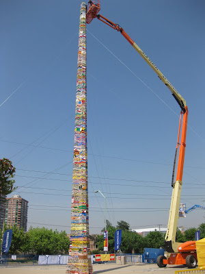 Quem quiser pode conferir a obra que está no estacionamento A do Shopping Center Norte (Travessa Casalbuono, 120), em São Paulo. O último bloquinho será colocado no topo neste sábado (9), a partir das 16h, pelo ex-jogador de futebol Cafú. No domingo (10), a torre permanecerá exposta ao público.